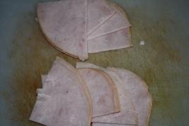 Couper les tranches de poulet ou de dinde en 4